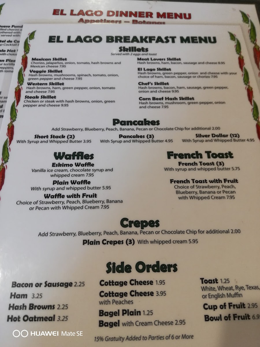 El Lago Menu